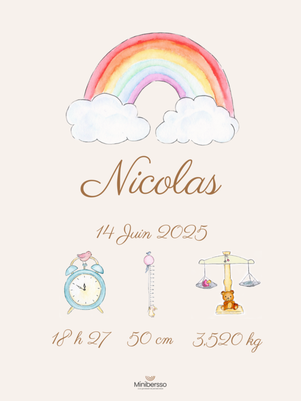 Un joli cadeau rien que pour vous Affiche de naissance pour bébé Créez le plus beau des souvenir pour votre bébé * N'hésitez pas à vous inspirez de l'exemple ci-contre. NomDateHeureTaillePoidsEnvoyer Petit conseil minibersso: Télécharger et imprimer cette affiche au format 30x40cm (A3)Utiliser du papier Mate couché pour un rendu exceptionnel